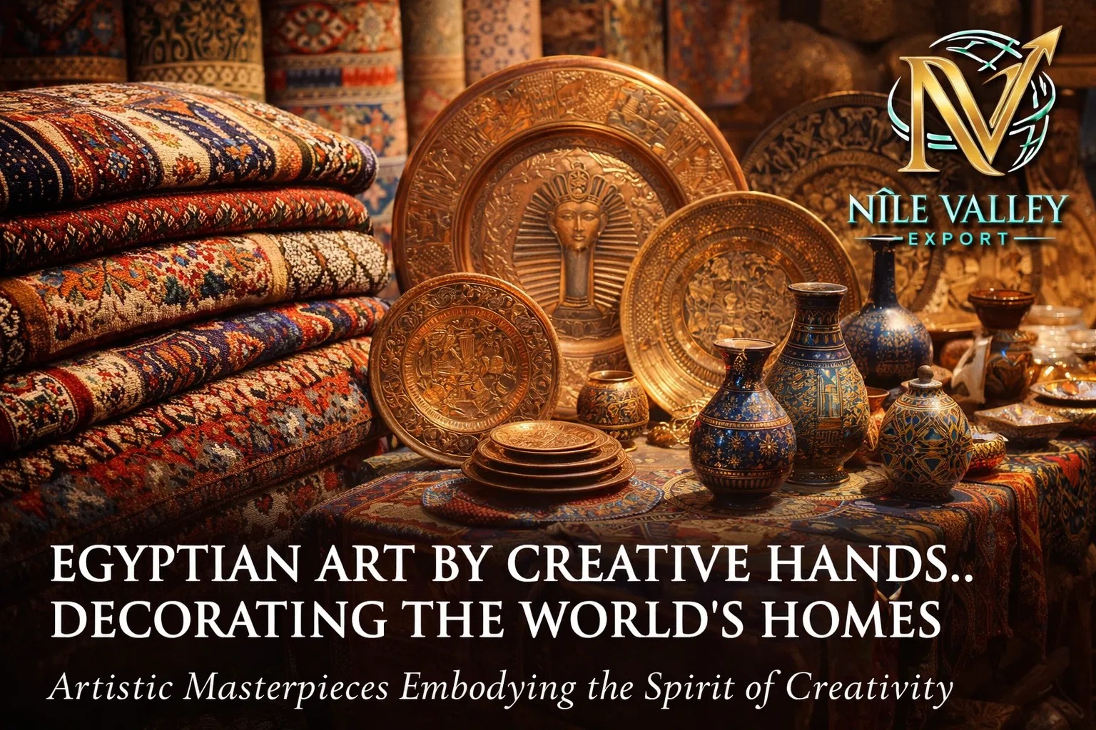 Authentic Egyptian handmade carpets, copperware and ceramics.
